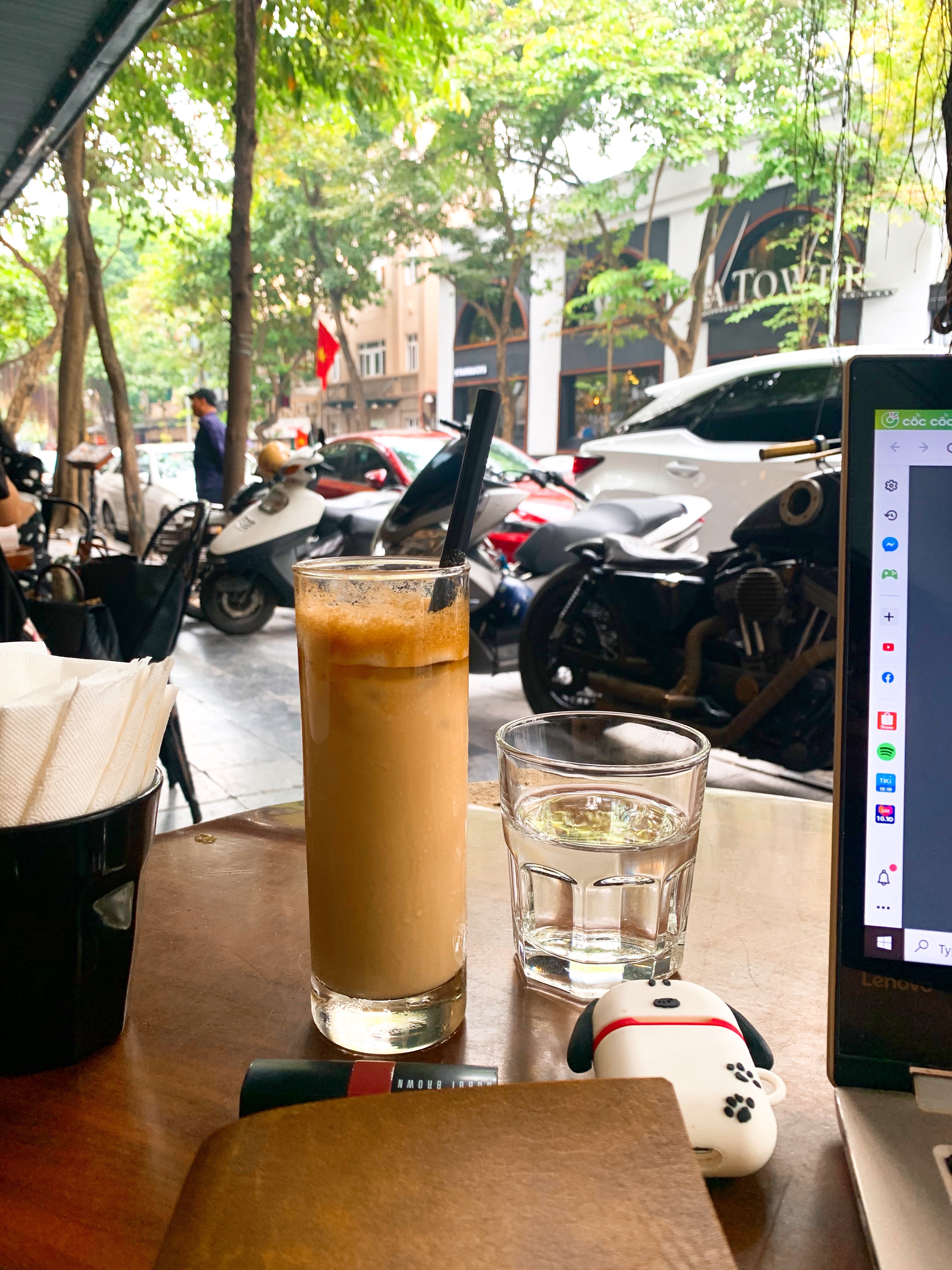 My first plan was going to study at a coffee shop at Chan Cam street (a cutie place but really small) but there were some groups of customer, so I decided to go back to Nha Tho street. Enjoy my favourite drink, read some articles with the view of St.Joseph’s Cathedral, listen to my Hanoi’s old sóng playlist, I feel like finally can seperate myself from this crowded city for a bit.