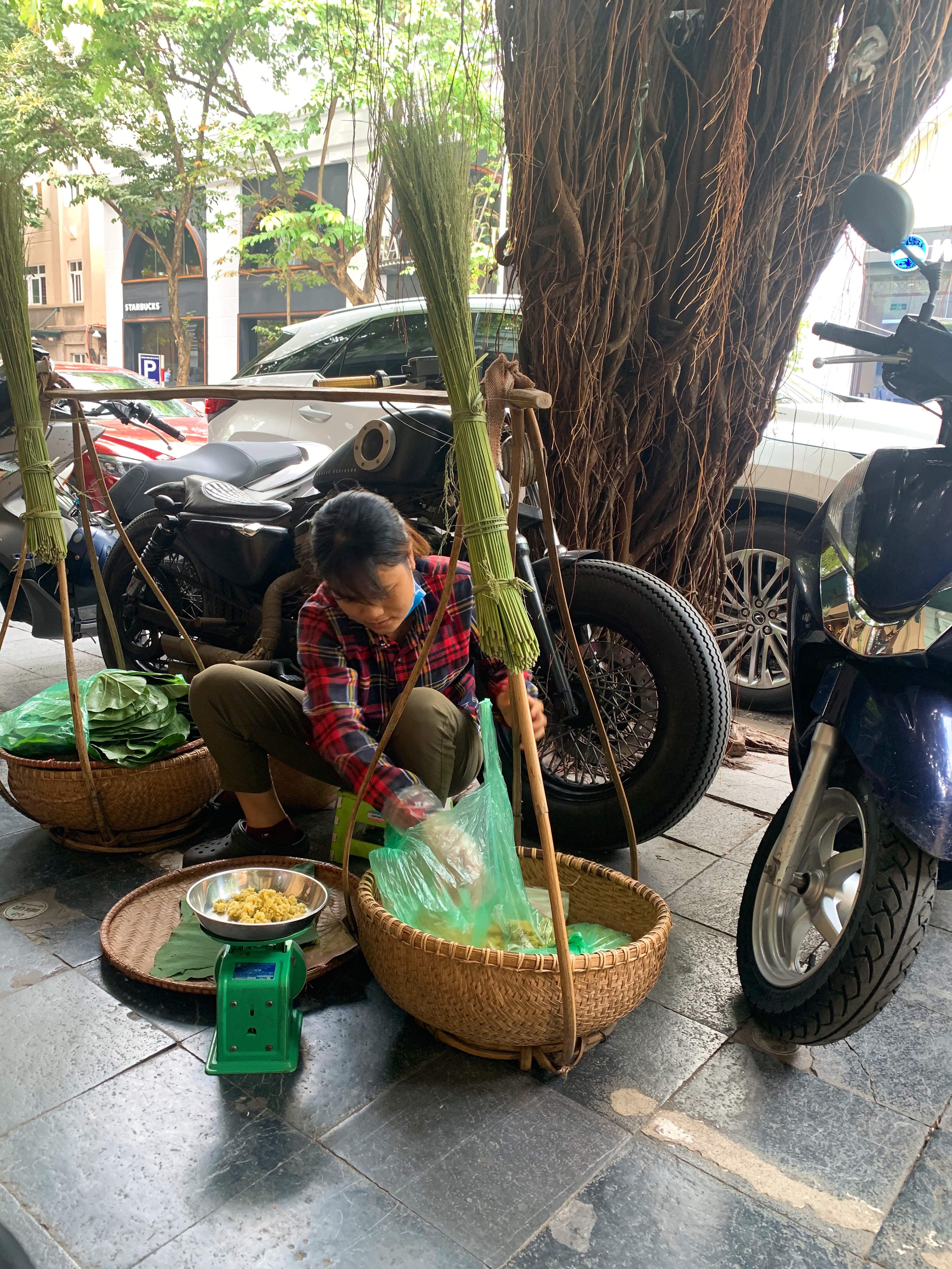 I also bought green rice flakes (Cốm) from a vendors seller. Com, is the taste of Hanoi’ autumn, like Vu Bang – a journalist, writer – thoughts on it: “deepened the sorrows of far-flung Hanoians as autumn’s cloud breezed in”.